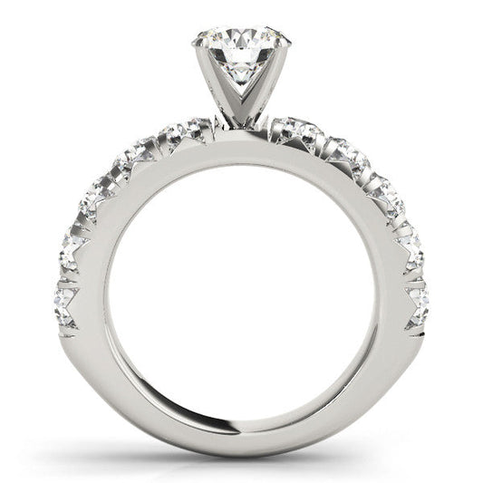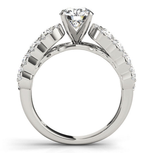14K White Gold Round Brilliant Diamond Floating Prong Engagement Ring With Pave Accents