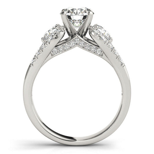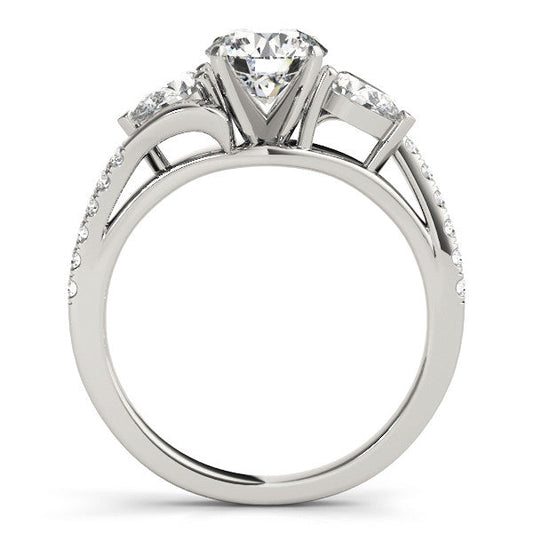 14K White Gold Round Brilliant Diamond Three Stone Split Shank Engagement Ring With Pave Accents (1.88ctw)