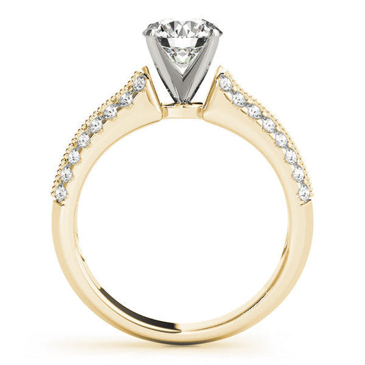 14K Yellow Gold Round Brilliant Diamond Engagement Ring With Beaded Pave Accents (1.50ctw)