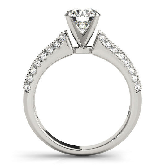 14K White Gold Round Brilliant Diamond Engagement Ring With Beaded Pave Accents (1.50ctw)