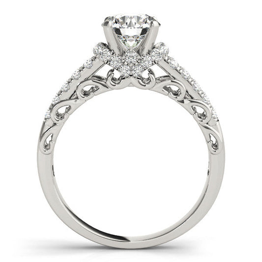 14K White Gold Round Brilliant Diamond High Shoulder Engagement Ring With Pave Accents (1.50ctw)