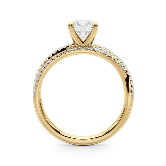 14K Yellow Gold Round Brilliant Diamond Twist Engagement Ring With Pave Accents (1.50ctw)