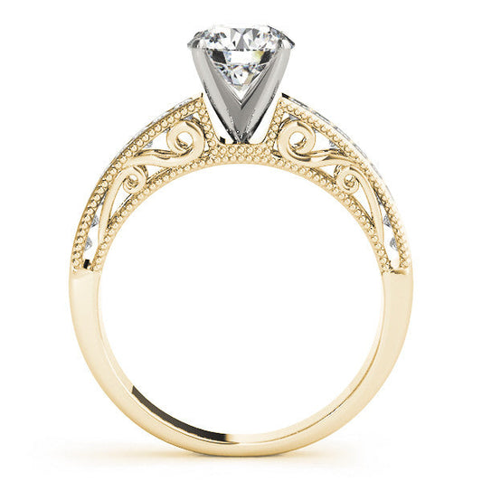 14K Yellow Gold Round Brilliant Diamond Antique Engagement Ring With Pave Accents (1.33ctw)