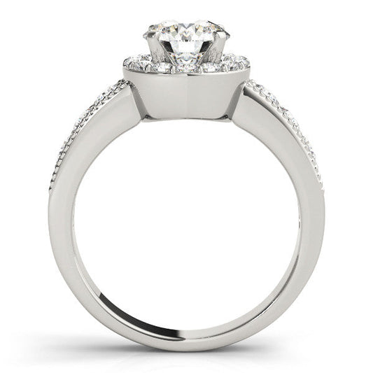 14K White Gold Round Brilliant Diamond In Cushion Halo Engagement Ring (1.10ctw)