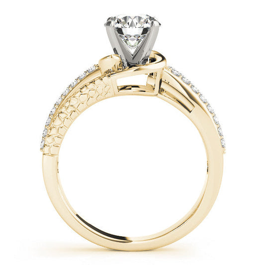 14K Yellow Gold Round Brilliant 6 Prong Diamond Engagement Ring With Pave Diamond Accents (1.06ctw)