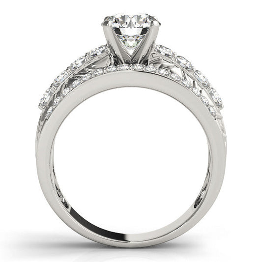 14K White Gold Round Brilliant Diamond Vintage Multirow Engagement Ring With Pave Accents (1.75ctw)