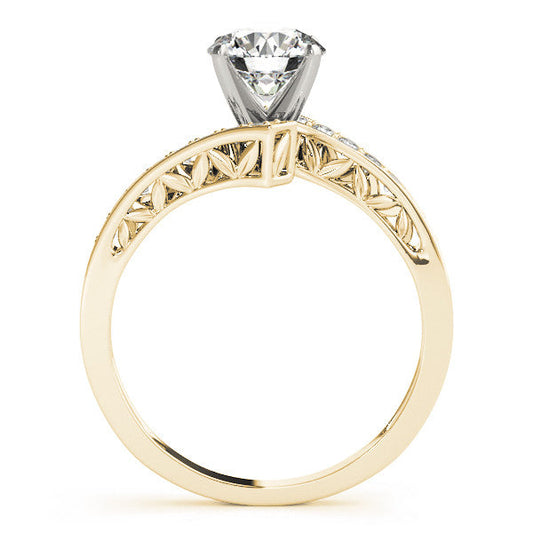 14K Yellow Gold Round Brilliant Diamond Leaf Bypass Engagement Ring With Channel Set Accents (1.25ctw)