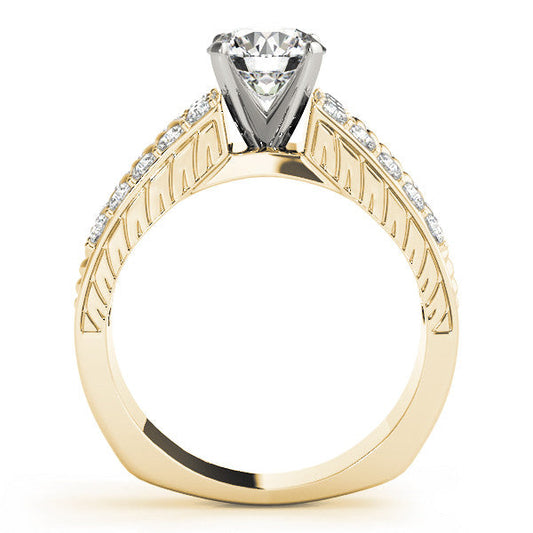 14K Yellow Gold Round Brilliant Diamond Engagement Ring With Round Basket Accents