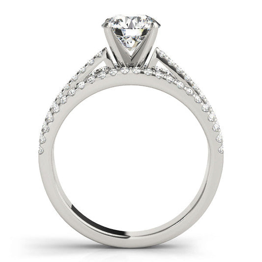 14K White Gold Round Brilliant Diamond Triple Split Shank Engagement Ring With Pave Accents