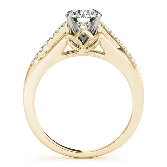 14K Yellow Gold Round Brilliant Diamond Beaded Floral Split Shank Engagement Ring With Pave Accents (1.10ctw)