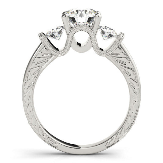 14K White Gold Round Brilliant Diamond Floating Three Stone Engagement Ring With Pave Accents (1.50ctw)