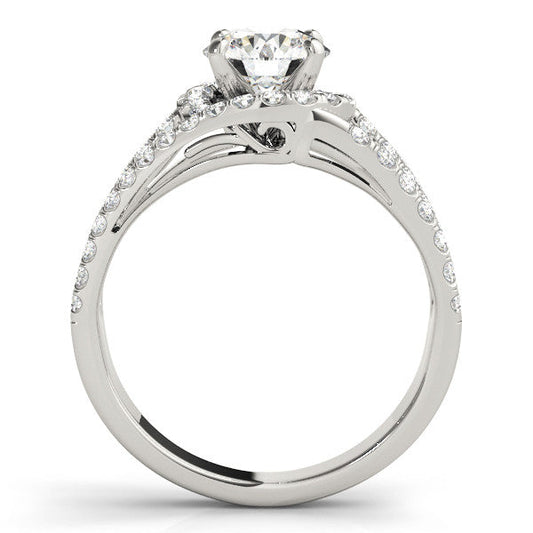 14K White Gold Round Brilliant Diamond Split Shank Bypass Engagement Ring With Pave Accents (1.63ctw)