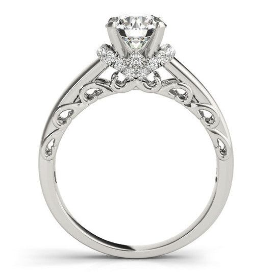 14K White Gold Round Brilliant Diamond Solitaire Engagement Ring With Diamond Collar Accents (1.17ctw)