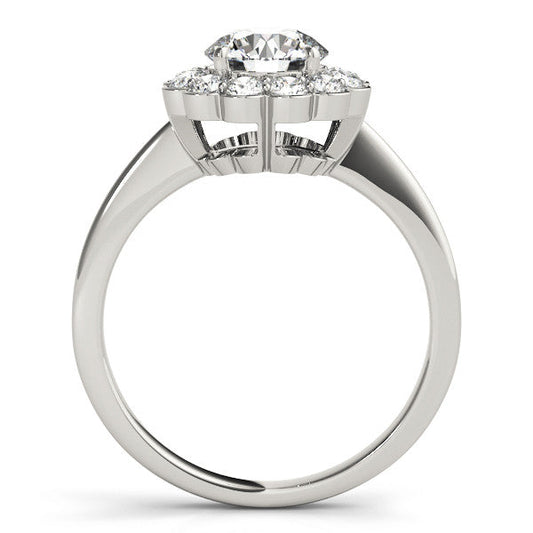 14K White Gold Round Brilliant Diamond Solitaire Floral Halo Engagement Ring With Accents (1.33ctw)