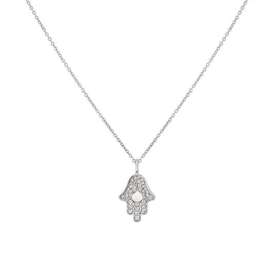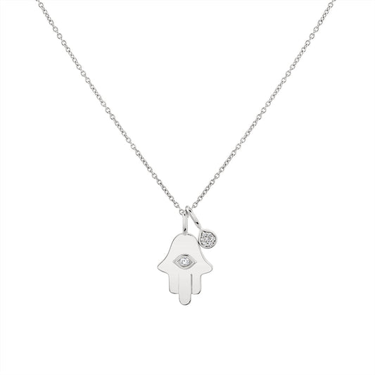 Eternelle Diamond Hamsa Hand Pendant with Diamond Shell Charm