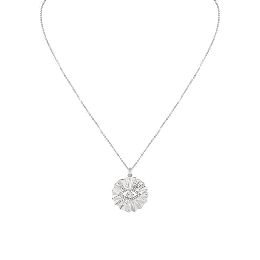 Lineaire Sculpted Diamond Evil Eye Medallion Pendant