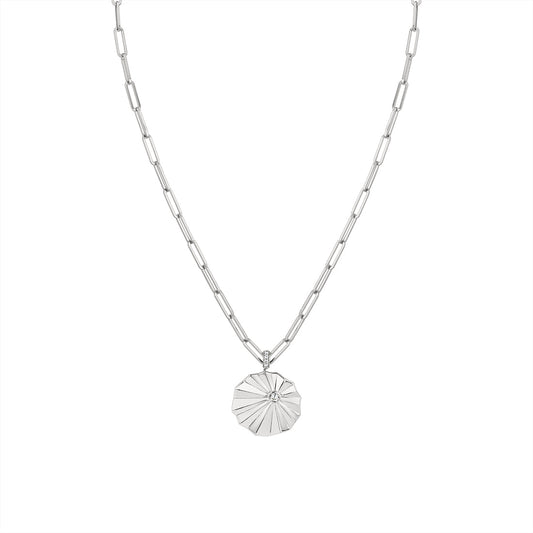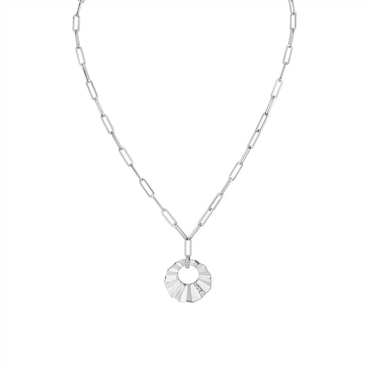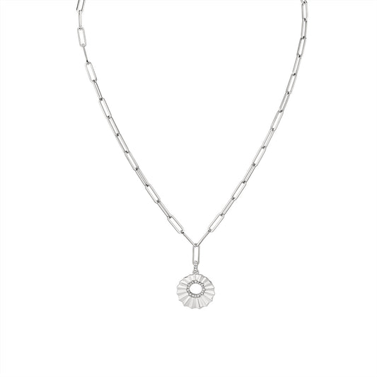 Lineaire Sculpted Medallion Diamond Pendant with Paperclip Chain