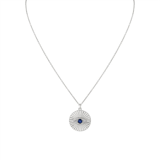 Lineaire Fine Line Diamond and Sapphire Evil Eye Pendant