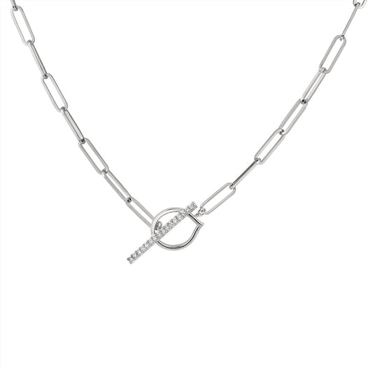 Shell Heritage Paperclip Diamond Toggle Necklace