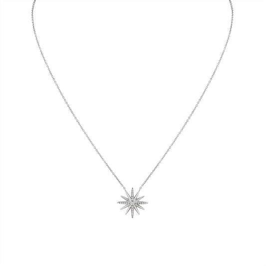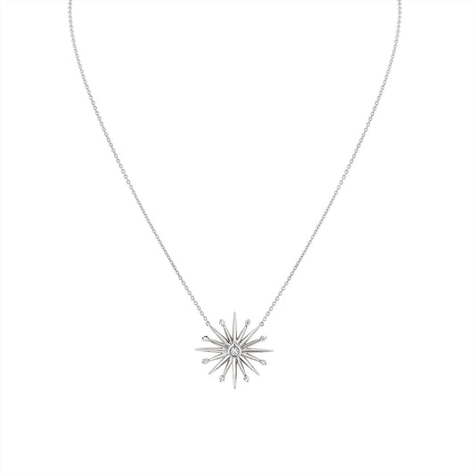 Solaz Bezel Shell Diamond Sun Necklace with Diamond Accents