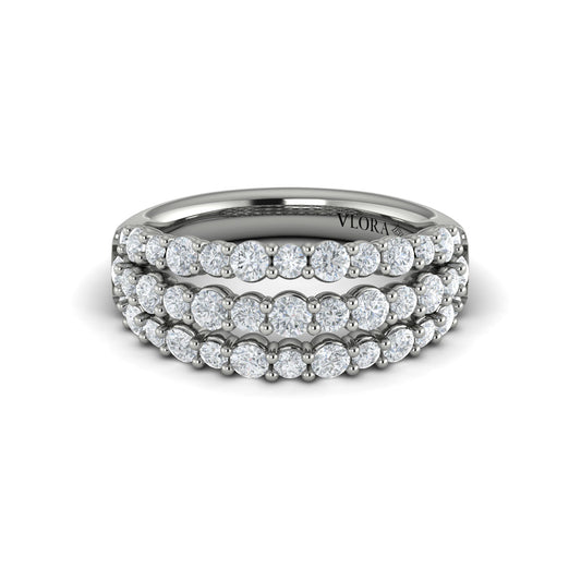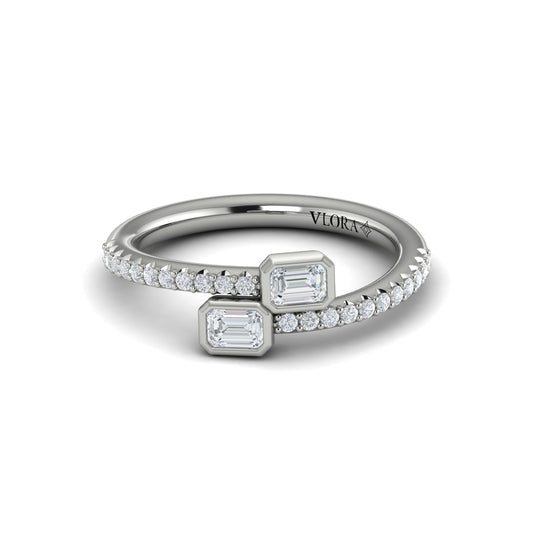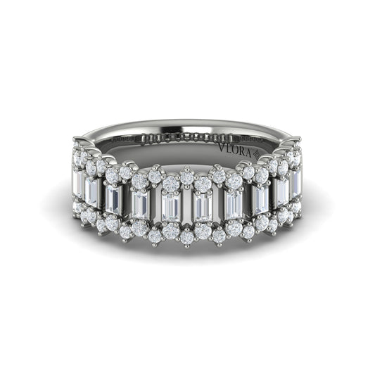 Multi Diamond Baguette and Round Two Row Diamond Ring