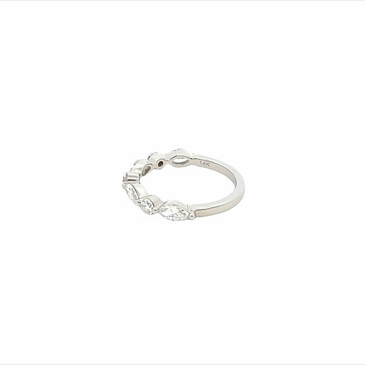 14K White Gold Marquise And Round Diamond Stackable Ring (.81ctw)