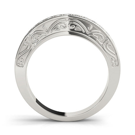 14K White Gold Round Brilliant Diamond Beaded Channel Wedding Ring With Engraving Details (.06ctw)