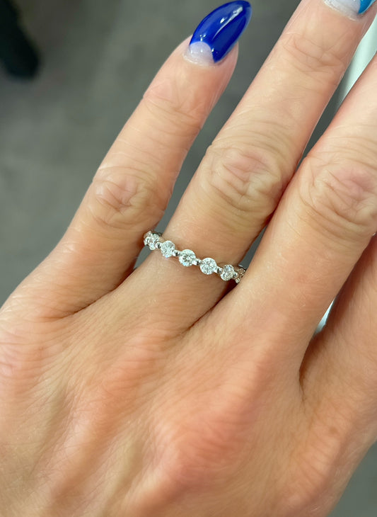 14K White Gold Round Brilliant Diamond Curved Wedding Ring (.38ctw)