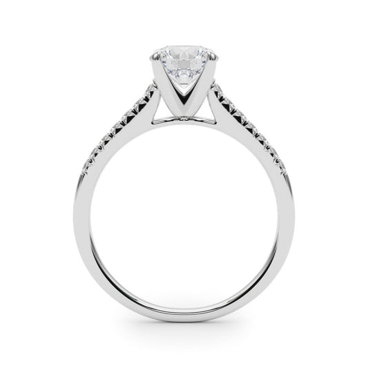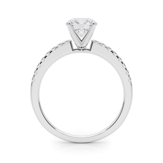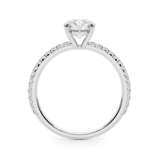 14K White Gold Round Brilliant Diamond Engagement Ring With French Pave Accent Diamonds