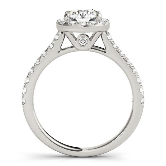 14K White Gold Round Brilliant Diamond Halo Pave Accented Engagement Ring