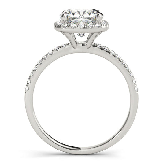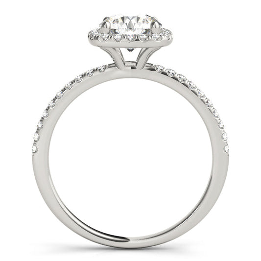 14K White Gold Round Brilliant Diamond Cushion Halo Engagement Ring With Pave Diamond Shank