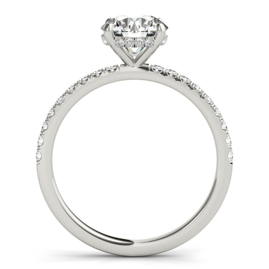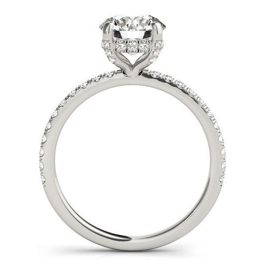 14K White Gold Round Brilliant Diamond Hidden Halo Engagement Ring With Pave Shank