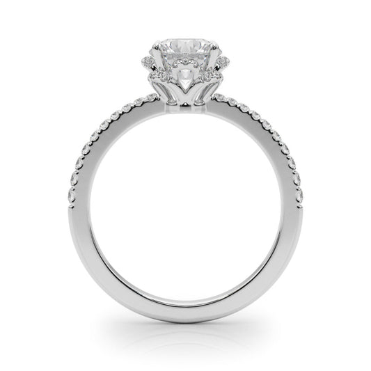14K White Gold Oval Diamond Hidden Halo Engagement Ring