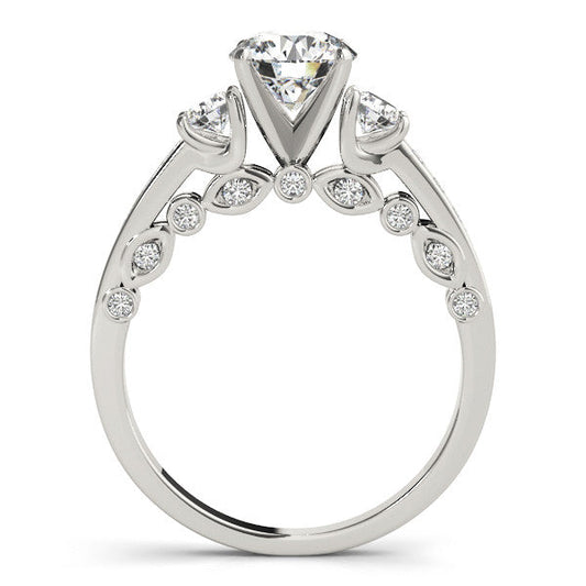 14K White Gold Round Brilliant Diamond Three Stone Engagement Ring With Pave Accents (1.50ctw)