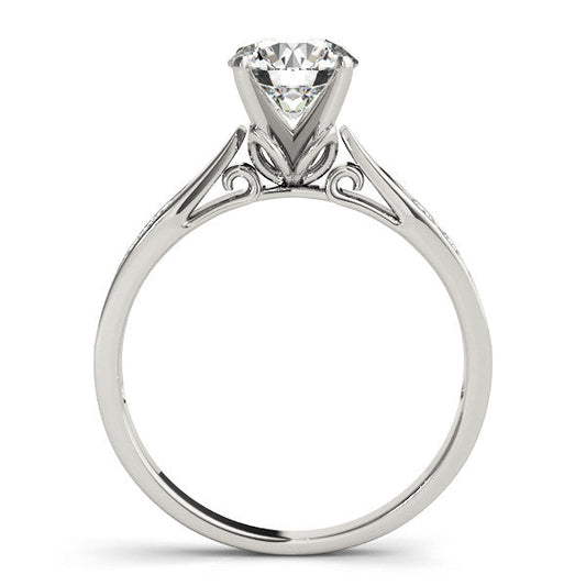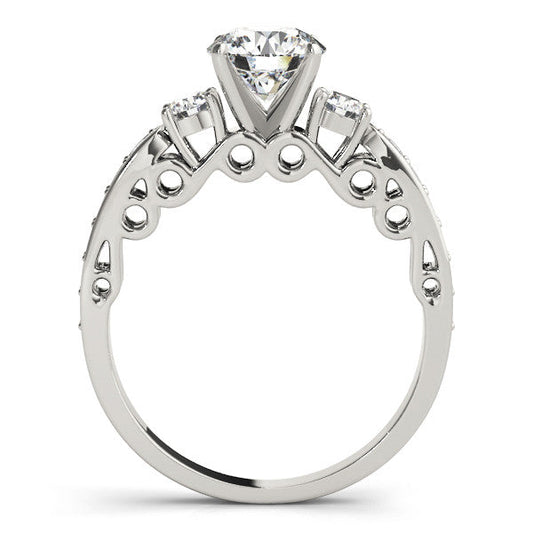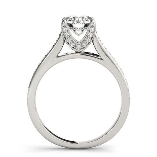 14K White Gold Round Brilliant Diamond Petal Basket Engagement Ring With Pave Accents (1.25ctw)