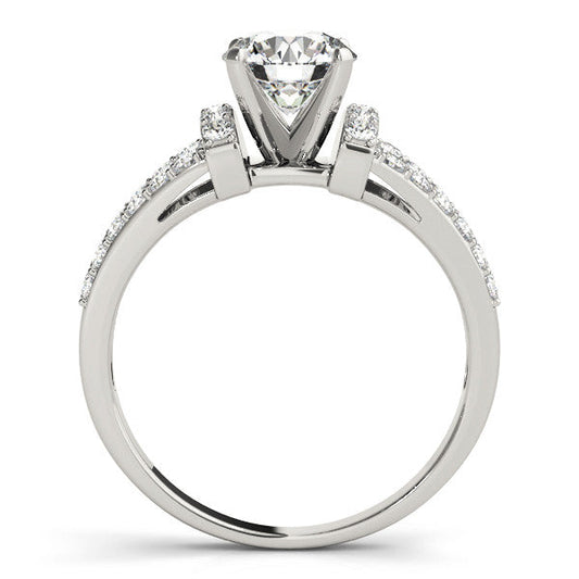 14K White Gold Round Brilliant Diamond Split Shank Engagement Ring With Pave Accents (1.33ctw)