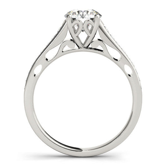 14K White Gold Round Brilliant Diamond Antique Engagement Ring With Pave Accents (1.25ctw)