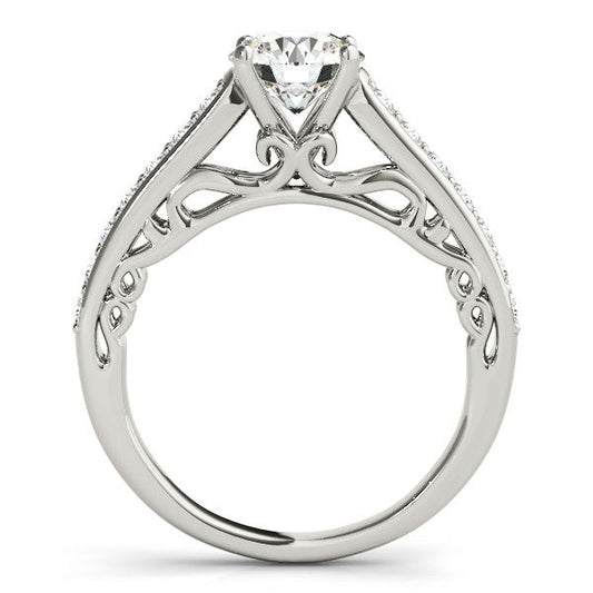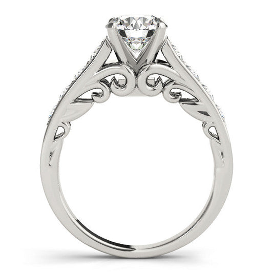 14K White Gold Round Brilliant Diamond Solitaire Engagement Ring With Filigree Accents (1ct)