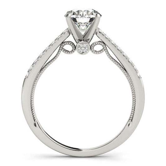 14K White Gold Round Brilliant Diamond Beaded Floral Split Shank Engagement Ring With Pave Accents (1.10ctw)
