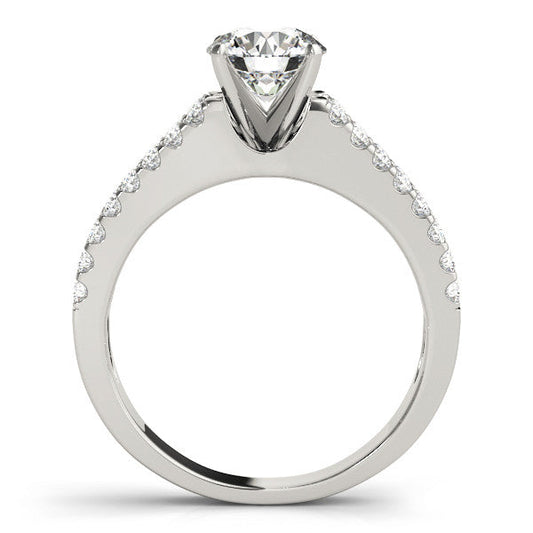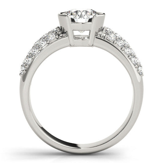 14K White Gold Round Brilliant Diamond Split Shank Engagement Ring With Pave Accents