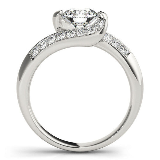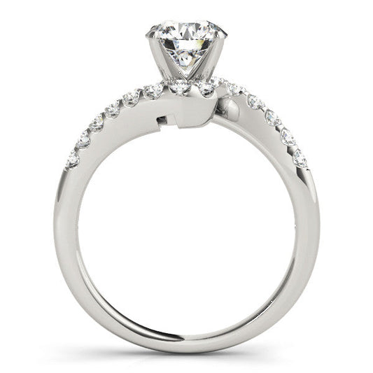 14K White Gold Round Brilliant Diamond Bypass Engagement Ring With Pave Accents