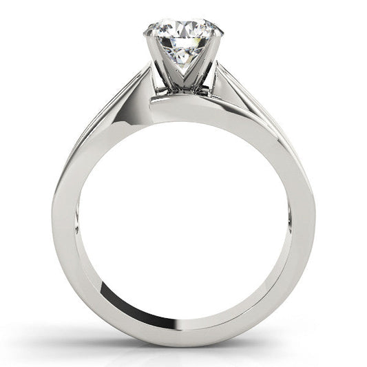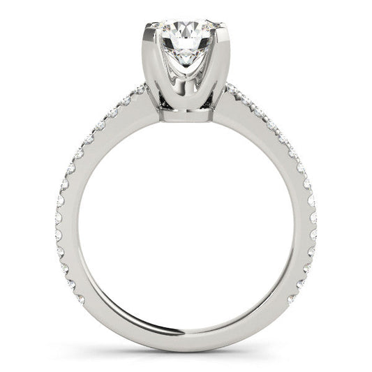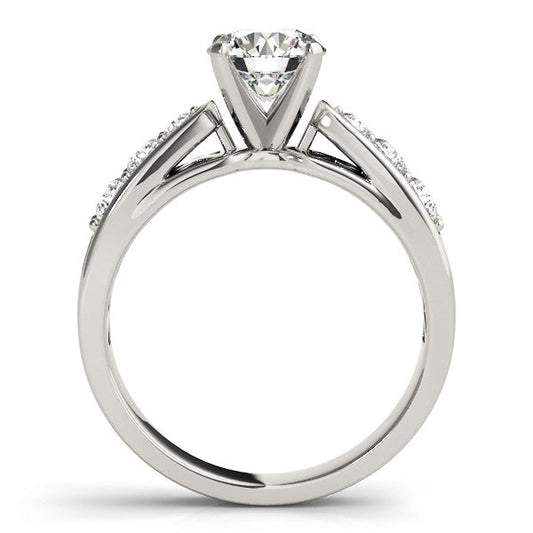 14K White Gold Round Brilliant Diamond Tapered Shoulder Engagement Ring With Pave Accents