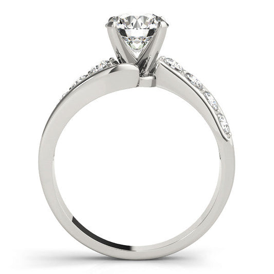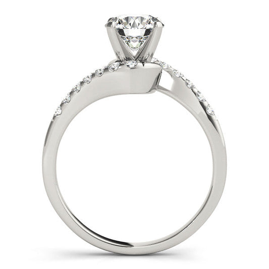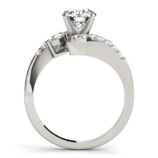 14K White Gold Round Brilliant Diamond Bypass Engagement Ring With Pave Accents