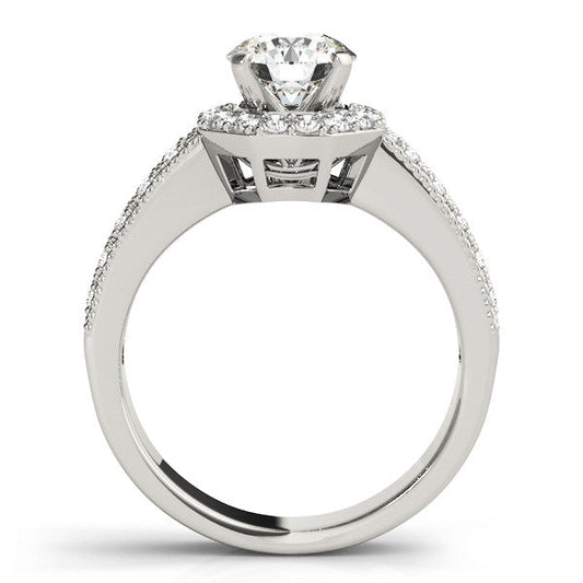 14K White Gold Round Brilliant Diamond Halo Engagement Ring With Pave Accents