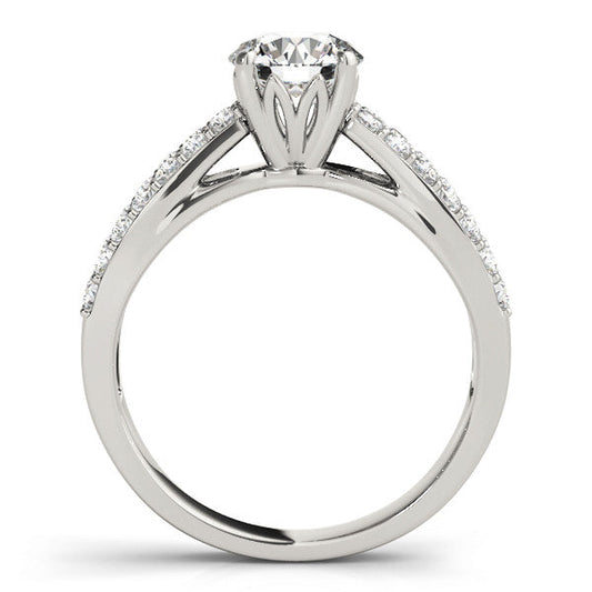 14K White Gold Round Brilliant Diamond Split Shank Engagement Ring With Pave Accents