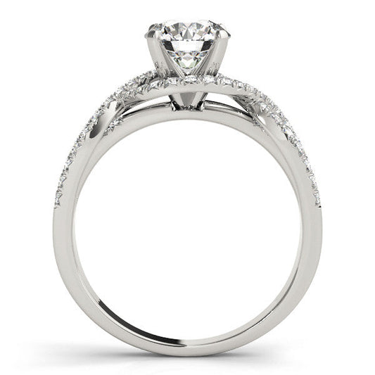 14K White Gold Round Brilliant Diamond Split Shank Twist Engagement Ring With Pave Accents (1.38ctw)