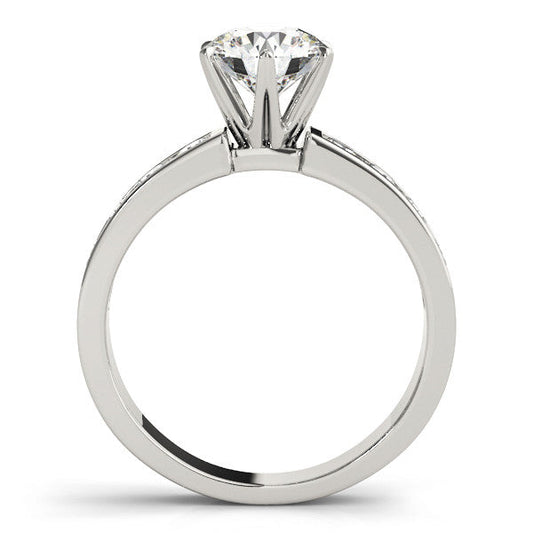 14K White Gold Round Brilliant Diamond Engagement Ring With Channel Set Accents