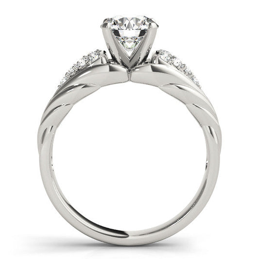 14K White Gold Round Brilliant Diamond Twisted Split Shank Engagement Ring With Beaded Channel Accents (1.33ctw)