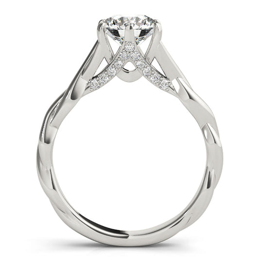 14K White Gold Round Brilliant Diamond Twisted Shank Engagement Ring With Pave Diamond Trellis (1.10ctw)