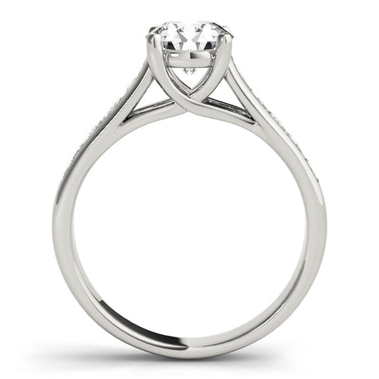 14K White Gold Round Brilliant Diamond Trellis Engagement Ring With Channel Set Accent Diamonds (1.38ctw)